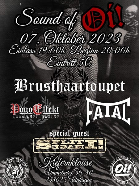 Am 07.10. ist es endlich Mal wieder soweit, wir spielen live in der Kiefernklause! Mit dabei sind Fatal und Pogo Effekt! (+ Special guest)